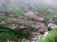 | 工事中の仙人温泉 | 仙人温泉の湯元の標高1550m | 雨の中の下山 |