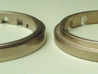通常の固定リング(下写真の左上のリング)だと中身の機械がガタついてしまうため、専用のムーブメントリングも必要です。